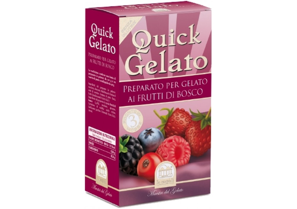 Prodotto semilavorato per preparare in poche e semplici mosse un gelato ai frutti di bosco buono come al bar. Senza glutine.